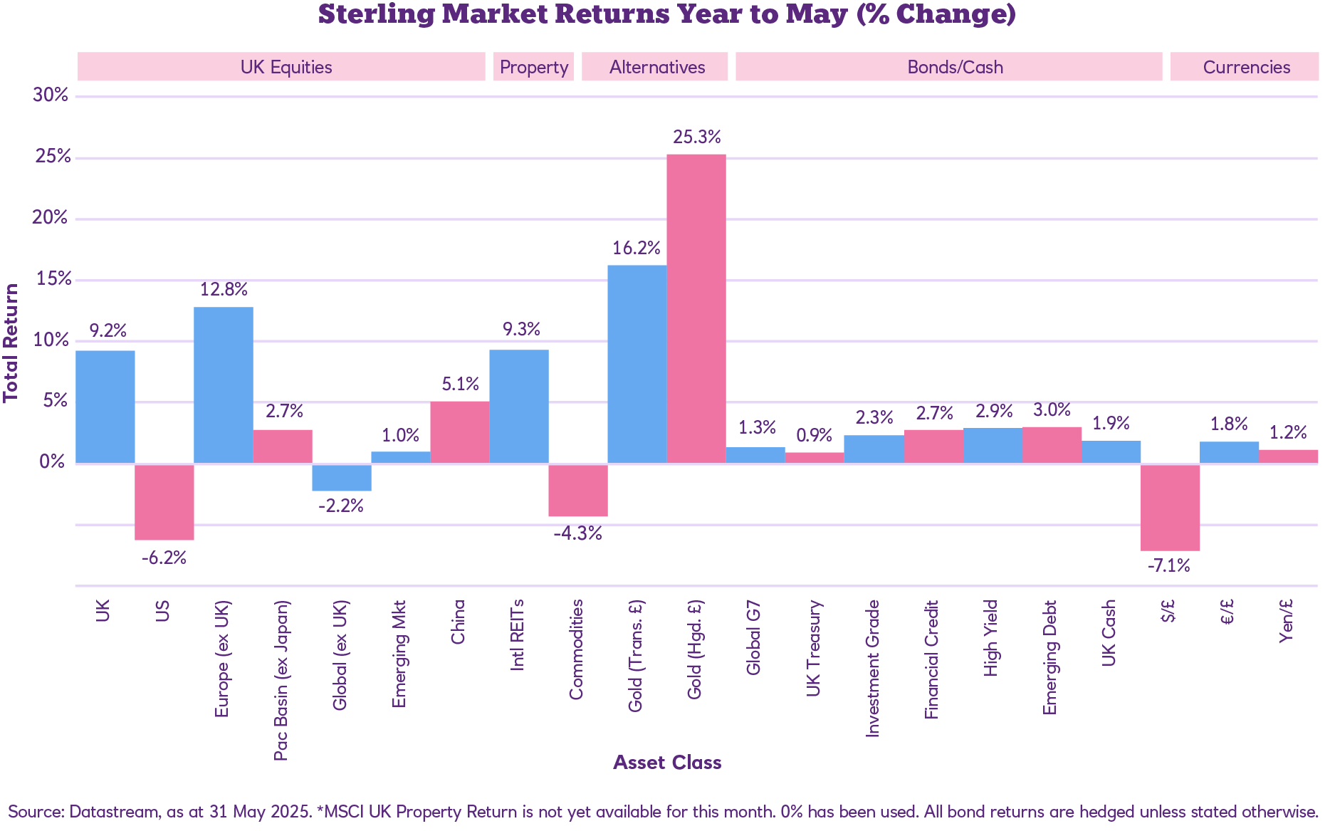 Pound sterling – We have a positive outlook on the pound compared to the US dollar which has been declining so far this year. We still see the dollar as overvalued, so we’ve hedged some of US investments in pounds. This helped mitigate some of the losses when stock markets recovered in April but the weak dollar meant returns were still down.
